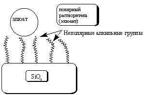 Рис. 3. Распределительная хроматография с привитой фазой (обращенно-фазный вариант).
