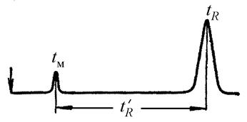 Время нахождения молекул исследуемого соединения в газовой фазе зависит от доли пустот в насадочной или капиллярной колонке. В разных насадочных колонках плотность набивки может изменяться, будет также изменяться и величина tм, поэтому для характеристики истинной удерживающей способности необходимо определять величину t'R — так называемое приведенное время удерживания:
