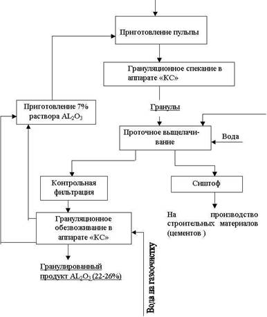 Преимущество способа по сравнению с обычным спеканием состоит в уменьшении почти в 2 раза расхода известняка, в хорошей грануляции шихты, большом температурном интервале спекообразования (около 300 С ). Недостатком схемы является большой расход щелочи и сложность регенерации ее из шлама [ 3 ].