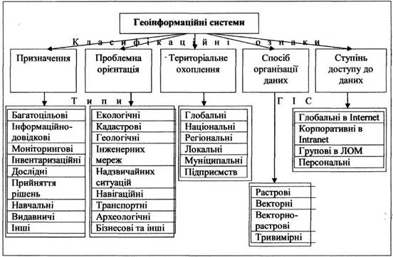 Мал. 1. Типи ГІС за класифікаційними ознаками.