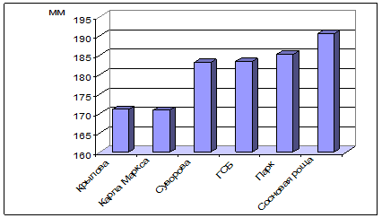 | ул. Карла Маркса | 170,8±1,96 | 15,6±1,3 | 170,4±2,77 | 16,3±1,6 | 0,37±0,043 |