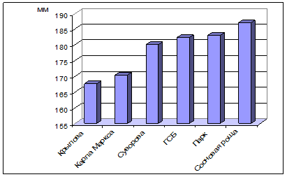 | ул. Крылова | 171±2,71 | 15,9±1,2 | 167,6±3,26 | 19,6±1,8 | 0,45±0,051 |