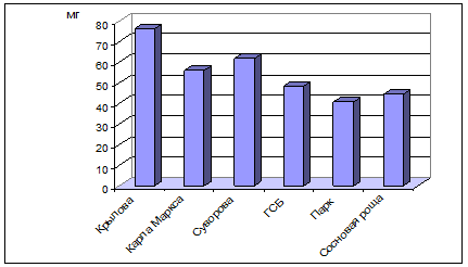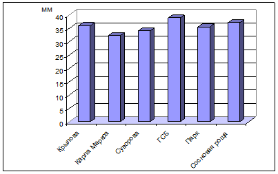 | ул. Карла Маркса | 52±1,96 | 26,6±2,66 | 0,37±0,043 |