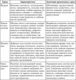 Таблица.1 Сравнительная характеристика сред жизни и адаптации к ним живых организмов