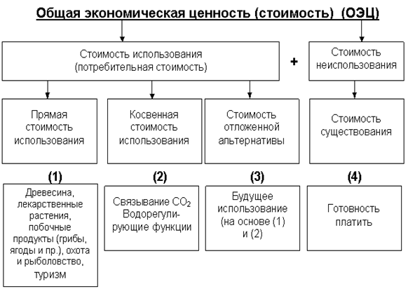 Пример: Общая структура экономической ценности для лесных ресурсов представлена на Рис. 3.