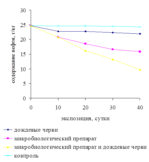 3.4 Трансформация нефти в почве микробиологическим препаратом и дождевыми червями