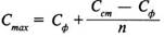 де Сmах - концентрація речовини в максимально забрудненому струмені, г/м3 ; Сф - концентрація речовини у воді вище випуску стічних вод (фонова концентрація), г/м3 ; Сст- концентрація речовини в стічній воді, г/м3 ; n - кратність розведення стічних вод на заданій відстані від випуску.