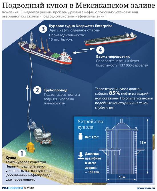 Авария в Мексиканском заливе, где после взрыва и затопления буровой платформы на воде образовалось огромное нефтяное пятно, стала первой подобной катастрофой в истории человечества. Для ее ликвидации, как отмечают эксперты, возможно, придется применить экстраординарные средства, а последствия ЧП могут заставить пересмотреть планы развития нефтедобычи на морском шельфе.