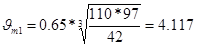 V — объем газовоздушной смеси, V1 =110 м3 /с, V2 =10 м3 /с.
