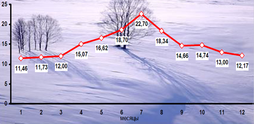В районах, где температура воздуха ниже 45oС, наблюдения проводятся по сокращенной программе ежедневно, кроме воскресенья, в 7 и 13 ч по местному декретному времени. Наблюдения по сокращенной программе допускается проводить также в местах, где средние месячные концентрации меньше 1/20 ПДК или меньше нижнего предела диапазона измерений примеси используемым методом.