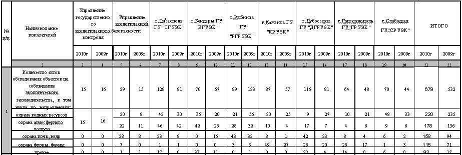 Реферат: Экологическое развитие и природоохранные мероприятия в Приднестровской Молдавской Республике в 2010 году