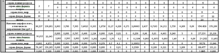 Таблица 4. Сводный отчет о контрольно-инспекторской деятельности Министерства природных ресурсов и экологического контроля за 2010 год в разрезе Управлений экологического контроля