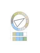 Цветной четырехтональный спектр. Внимание! Избегайте чересчур большого количества цветов. Обычно сразу же выделяется комбинация из четырех цветов, в особенности, если сочетать цветовой треугольник с нейтральными цветами – белым и зеленым. Все обычные треугольники можно получить путем вращения равностороннего или равнобедренного треугольника.