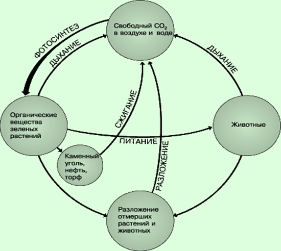 Вся земная жизнь основана на углероде. Каждая молекула живого организма построена на основе углеродного скелета. Атомы углерода постоянно мигрируют из одной части биосферы (узкой оболочки Земли, где существует жизнь) в другую. Известный географ И.М.Забелин высказал мысль, что природа создала сначала жизнь для ускорения круговорота углерода, а затем разум для того, чтобы ускорить развитие биосферы.