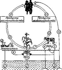 4,12 - питьевые воды; 5 - выделения; 6 - токсиканты;