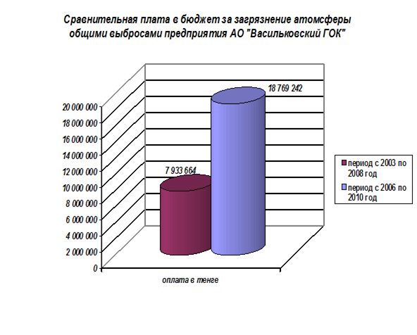 Таблица 25 - Сравнительная плата в бюджет за загрязнение атмосферы общими выбросами предприятия АО «Васильковский ГОК»