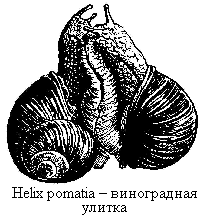 Средней Европы, в Передней Азии и Северной Африке до Алжира. Раковина этой улитки, кубаревидная по форме, достигает высоты 50 мм при ширине около 45 мм и образует 41/з быстро расширяющихся оборота, которые оканчиваются широким устьем. По светлому желто-коричневатому фону обычно вдоль оборотов завитка идут широкие коричневые полосы, степень выраженности которых, однако, очень изменчива, так что можно встретить экземпляры и вовсе лишенные этих полос, с однотонной окраской, виноградная улитка находит подходящие для себя местообитания не только на виноградниках, но также и в слабозатененных садах, а иногда и на открытых местах. День она проводит чаще всего спрятавшись в свою раковину и выходит на кормежку лишь ночью. Главную пищу ее составляют зеленые части растений, и в связи с этим она приносит иногда значительный вред, объедая виноградные лозы. Относительно размножения этих улиток производились многочисленные наблюдения, рисующие их поведение в период спаривания, когда они приступают к характерной для многих наземных легочных улиток так называемой "любовной игре". Стремление улитки к спариванию сразу обнаруживается в ее поведении. Она медленно ползет, как бы в поисках чего-то, часто останавливается на полдороге и долго выжидает на одном месте, слегка приподняв переднюю часть своего тела. Если случайно встретятся две такие улитки, они сейчас же приступают к "любовной игре", которая предшествует акту оплодотворения. Обе они вытягиваются вверх одна против другой и принимают характерное положение, соприкасаясь участками подошвы и ощупывая друг друга щупальцами и ротовыми лопастями. Однако эти движения прекращаются уже через короткое время, животные падают и, плотно прижавшись друг к Другу подошвами, остаются неподвижными примерно от четверти до получаса. После этого периода покоя снова возобновляется прежняя игра, и весь этот процесс длится около двух часов, когда, наконец, то из животных, которое достигло большего возбуждения, не втыкает в тело своего партнера любовную стрелу, которая усиливает и его возбуждение. После короткой паузы происходит самый акт совокупления, причем каждая улитка играет роль и самца и самки. Само совокупление у виноградной улитки продолжается всего несколько минут, тогда как у некоторых других видов оно длится часами. После этого, однако, проходит еще продолжительное время, пока полностью не произойдет обмен сперматофорами у совершенно обессилевших животных. Только после этого они расползаются в разные стороны, но при этом вдоль ноги еще долго проходят особенно сильные волны сокращения, благодаря которым, вероятно, сперматофоры, содержащие сперматозоиды, легче проникают в семеприемник. Оплодотворенные яйца, содержащие запас питательного материала для будущего зародыша и одетые каждое порознь защитной оболочкой, откладываются в землю в специально выкопанную улиткой ямку, отверстие которой закрывается, когда кладка окончена.