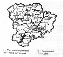 По термическим ресурсам вегетационного периода и обеспеченности влагой в области выделено четыре агроклиматических района. Рис. 1.