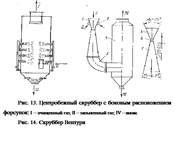 К подгруппе скрубберов следует отнести различной формы камеры с форсунками, полые, либо заполненные слоями насадки из кусков неправильной формы или реек, дисков, колец, либо с лопастями и другими деталями и конструкциями правильной геометрической формы. Кроме того, в эту подгруппу входят скрубберы с трубой Вентури, известные в технической литературе также под названием турбулентных промывателей, коагуляционных мокрых пылеуловителей и эжекторных скрубберов.