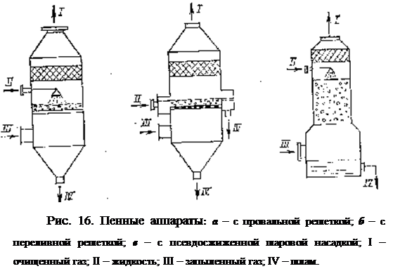 Аппараты с переливными решетками не получили широкого применения в пылеочистной технике вследствие зарастания решетки пылевыми отложениями. Поэтому в настоящее время их используют в основном и процессах тепломассообмена.