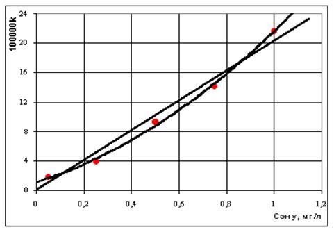 Полученные данные не позволяют однозначно подтвердить или однозначно опровергнуть вопрос о пороге токсического воздействия нефти на гидробионты. В пределах точности эксперимента зависимость константы скорости дезактивации SH-групп от концентрации нефти в воде (Сну ) может носить либо линейный