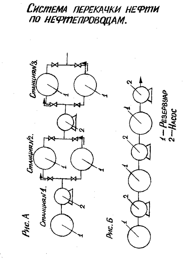 Постанционная система перекачки характеризуется тем, что нефть или нефтепродукты поступают в резервуары промежуточных перекачивающих станций, заполняют их, а затем откачиваются на следующую станцию (приложение №1, рисунок А). Если на станции расположено несколько резервуаров, то перекачка продукции осуществляется беспрерывно: в один резервуар продукция поступает, а из другого откачивается в нефтепровод.