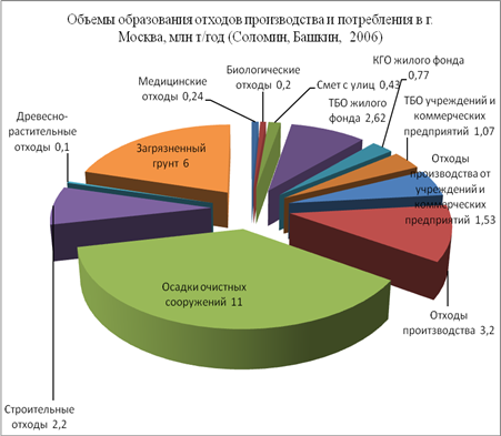 Отходы производства и потребления – это остатки сырья, материалов, полуфабрикатов, иных изделий или продуктов, которые образовались в процессе производства или потребления, а также товары (продукция), утратившие свои потребительские свойства. Отходы производства и потребления поступают в окружающую среду в больших количествах, в частности только в Москве ежегодно образуется 20 млн.м³ так называемых твердых бытовых отходов и около 5 млн.т промышленных нетоксичных отходов. В общей сложности в Российской Федерации накоплено около 7 млрд.т. отходов, из которых 1 млрд.т. – опасные отходы. В среднем на каждого жителя РФ вырабатывается (накапливается) до 15 т. различных твердых бытовых отходов в год. Отходы в значительных количествах образуются во всех базовых отраслях промышленности (сельское хозяйство, энергетика, металлургия, строительство, транспорт, горнодобывающее производство), а также в быту.