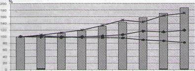 Динамика выбросов загрязняющих веществ в атмосферу за последнее десятилетие свидетельствует о ярко выраженной тенденции к их снижению. Общий их объем снизился с 3403 тыс. т в 1990 г. до 1327 тыс. т в 2003 г., или в 2,6 раза. При этом меняется соотношение между выбросами от стационарных и передвижных источников. Если в начале 80-х гг. XX в. объемы выбросов распределялись между ними примерно поровну, то в 1990 г. на долю автотранспорта пришлось 65,5 % , стационарных источников — 34,5 % . В 2003 г. доля автотранспорта повысилась до 72 % , а стационарных источников снизилась до 28 %.