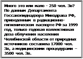 Итак, что такое 250 чел. Зв коллективной дозы, индивидуальные дозы порядка мЗв для персонала и в сотни раз меньшие, измеряемые в мкЗв для населения? Это всего лишь одна десятитысячная добавка к дозам техногенного происхождения.