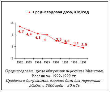 В условиях нормальной эксплуатации дозы облучения персонала уже многие десятилетия ниже уровней, при которых имеются прямые научно обоснованные данные о значимых вредных для здоровья последствиях.