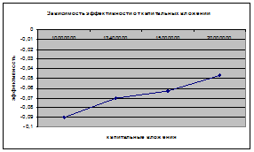 Из графика видно, что эффективность увеличивается при увеличении капитальных вложений в очистительные сооружения.
