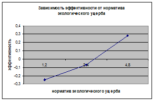 Из графика видно, что чем больше норматив экологического ущерба, тем эффективнее внедрение очистительных систем.