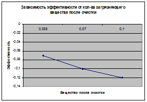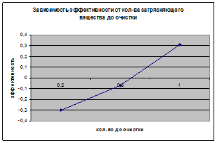 Зависимость между эффективностью и кол-во загрязняющего вещества после очистки обратно пропорциональна.