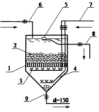 Для зернистой загрузки скорых фильтров используются кварцевый песок, дробленый керамзит и другие материалы, обеспечивающие технологический процесс и обладающие химической стойкостью и механической прочностью.