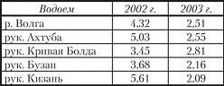 Индекс загрязнения воды (ИЗВ) в 2003 г. уменьшился по сравнению с 2002 г. как по р. Волга, так и по ее рукавам (табл. 1.4).