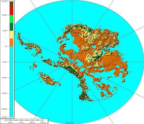 Межправительственная комиссия выделила ряд районов, наиболее уязвимых к ожидаемому изменению климата[13]. Это район Сахары, , мега-дельты Азии, небольшие острова. Антарктика. Рельеф поверхности материка без ледникового покрова.