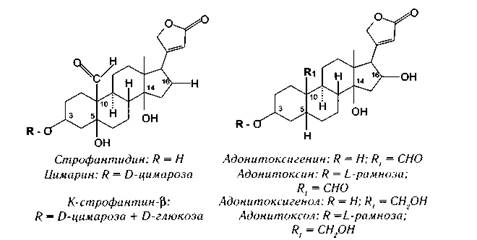 Химический состав. Трава горицвета весеннего содержит в себе свыше 20 кардиотонических (сердечных) гликозидов (около 0,25%), среди которых основными являются цимарин, К-строфан тин – (3, К-строфантозид (производные строфантидина), адонитоксин (0,07%) (агликон – адонитоксигенин), ацетил-адонитоксин, адонитоксол (L-амнозидадонитоксигенола) а также, строфадогенин и их производные. Адонитоксин при гидролизе расщепляется на адонитоксигенин и сахар L-рамнозу, а цимарин – на строфантидин и цимарозу.
