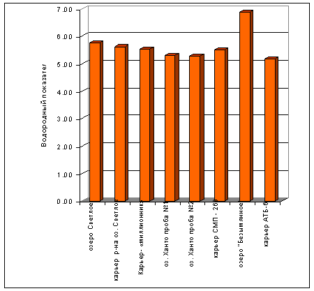 К категории грязных вод отнесены оз. Ханто, оз. Безымянное, вода, отобранная в карьере АТБ-6. К категории загрязнённых- оз.Светлое и близлежащие карьеры, карьер в СМП-269.