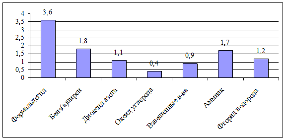 На рис.4 представлена сравнительная характеристика уровня загрязнения атмосферного воздуха веществами, вносящими наибольший вклад в загрязнение атмосферы города.