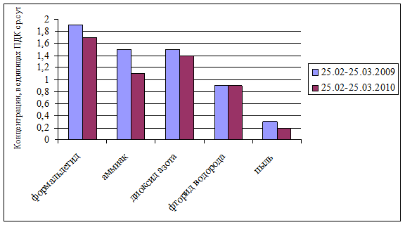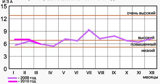 Состояние загрязнения атмосферного воздуха в городе Тольятти в 2009 и 2010 гг. оценивалось как “повышенное”. Показатель ИЗА составил 5-6 ед. (Рис. 2)