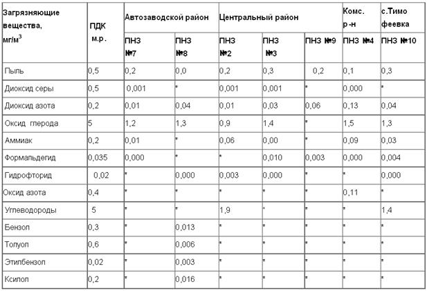 В целом за 2009 год зафиксировано 50 случаев превышения максимально разовых предельно допустимых концентраций. Для сравнения: из них по 13 – в Тольятти, 10 – в Новокуйбышевске, по 9 – в Чапаевске и Сызрани, 7 – в Самаре и 2 – в Отрадном (Табл. 2).