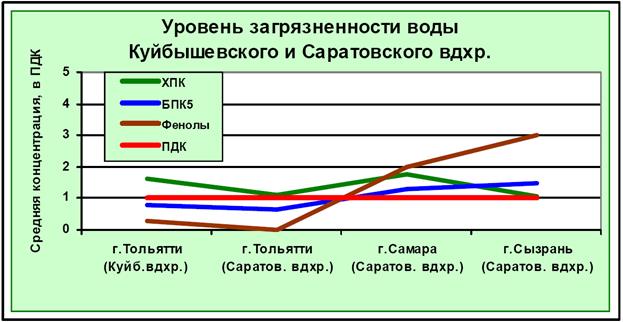 Рис. 5. Уровень загрязненности воды Куйбышевского и Саратовского водохранилищ