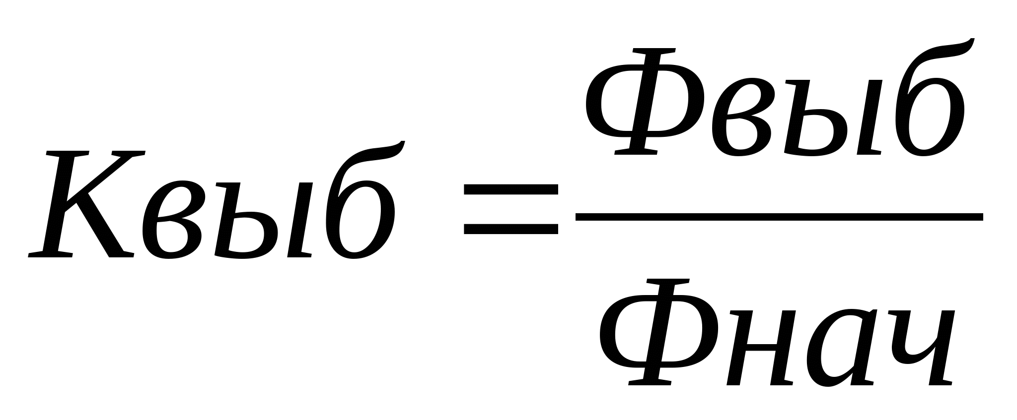 Фондоотдача — показатель выпуска продукции на 1 грн. стоимости основных фондов (Фотд) — определяется как отношение объема выпуска продукции (В) к стоимости основных производственных фондов (Ф) за сопоставимый период времени (месяц, год) [19]: