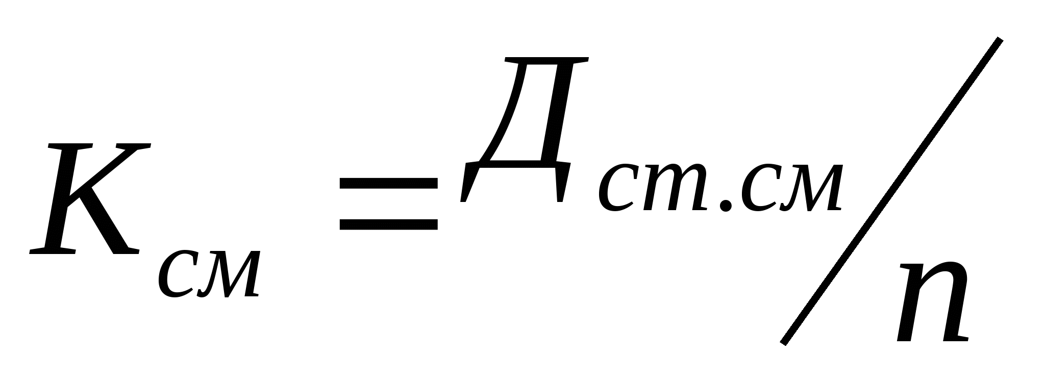Коэффициент сменности работы оборудования (Ксм) определяется как отношение общего количества отработанных оборудованием станко-смен (Дст.см) к количеству станков, работавших в наибольшую смену (n) [15]: