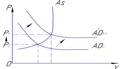 Влияние увеличения совокупного спроса на инфляцию зависит от того, на каком участке AS находится экономика в данный момент (рис.1):