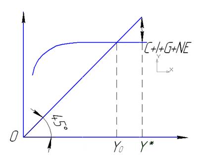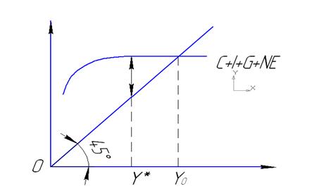 При дефляционном разрыве планируемые совокупные расходы ниже ВНП, достигнутого при полной занятости, т.е. Y 0 < Y *. В этом случае увеличение совокупных расходов окажет положительное воздействие на величину реального ВНП.