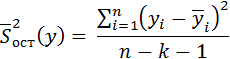 Есть доля вариации прогнозной (теоретической) величины Y относительно наблюденных значений Y, объясненная за счет включенных в модель факторов. Очень хорошо, если R2 > = 80%. Остальная доля теоретических значений Y зависит от других, не участвовавших в модели факторов. Задача исследователя - находить факторы, увеличивающие R2, и давать объяснение вариаций прогноза, чтобы получить идеальное уравнение. Однако, коэффициент R2 самое большее может достигнуть величины 1 (или 100%), когда все значения факторов различны. А если в данных есть повторяющиеся опыты, то величина R2 не может достигнуть 1, как бы хороша ни была модель. Поэтому дубликаты данных следует удалять из исходной таблицы до начала расчета регрессии. Некоторые программные пакеты автоматически удаляют дубликат, оставляя лишь уникальные данные. Повторение одинаковых данных снижает надежность оценок модели. R2 = 1 лишь при полном согласии экспериментальных (наблюденных) и теоретических (расчетных) данных, т. е. когда теоретические значения точно совпадают с наблюдаемыми. Однако это считается весьма маловероятным случаем.