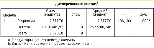 Однако, то положение, что модель 2 является не значимой, а значит она будет отвергнута отвергнута, показывает, что наиболее приемлемой моделью, с помощью которой можно охарактеризовать зависимость добычи нефти от факторов, является однофакторная модель влияния суточного дебита одной скважины.