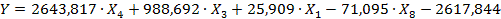 | У | Х 1 | Х 3 | Х 4 | Х 8 | |