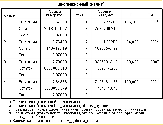 Теперь непосредственно можно приступить к характеристики полученных данных. В ходе исследования были построены две эконометрических модели зависимости объема нефтедобычи от определяющих признаков.